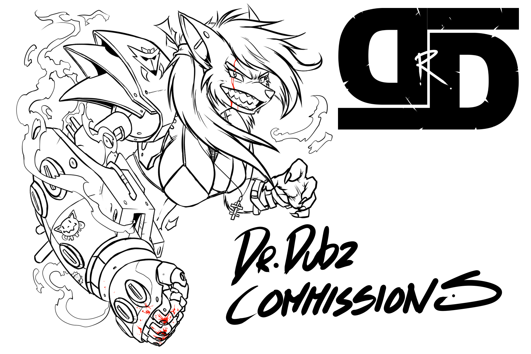 Background - £70+ for full BGAll Line art comes with optional shading choices, including cross hatching, grey cel shading or block black.
